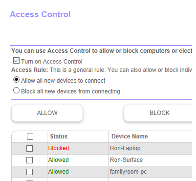 On my access control page in the router one device always shows Blocked even though it's not blocked. I never set it to be blocked. If I remove the device the next one on the list shows blocked. I...