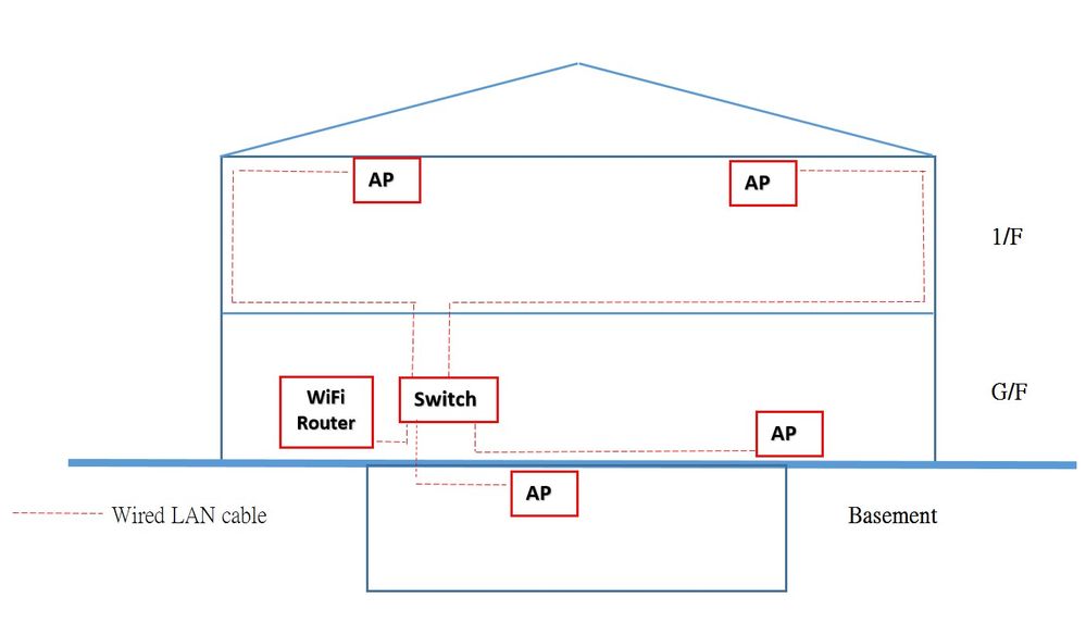 Also, each story have been wired cat5e cables, so I wonder if using 1 router + APs or 1 router + satellites, which plan is good, please see below diagram?
