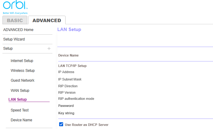 There is only one LAN Setup table, on the router (RBR50).