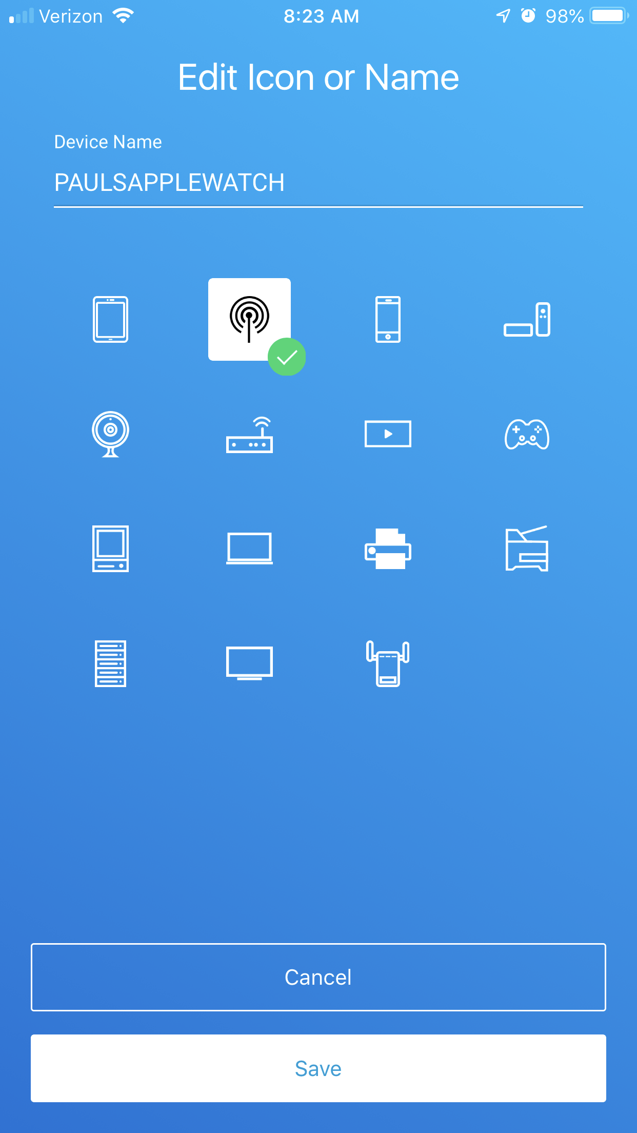 Hey Netgear, how about adding a label to indicate the device type on the same screen as the device icons? That will same me time from picking the wrong device type. Also, how about some more device types? Such as doorbells, outlets, etc.