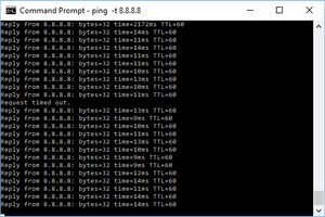 64 bytes from 8.8.8.8: icmp_seq=77 ttl=59 time=11.413 ms 64 bytes from 8.8.8.8: icmp_seq=78 ttl=59 time=12.679 ms 64 bytes from 8.8.8.8: icmp_seq=79 ttl=59 time=11.883 ms 64 bytes from 8.8.8.8: icmp_seq=80 ttl=59 time=10.256 ms ^C --- 8.8.8.8 ping statistics --- 81 packets transmitted, 81 packets received, 0.0% packet loss round-trip min/avg/max/stddev = 9.784/11.959/15.560/1.050 ms