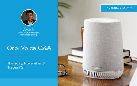 Join us tomorrow, November 8 at 1PM PST, for our Orbi Voice Facebook Q&A! We'll have special guest Amit Rele, Orbi's Senior Product Manager, ready to help answer all those great Orbi Voice que...