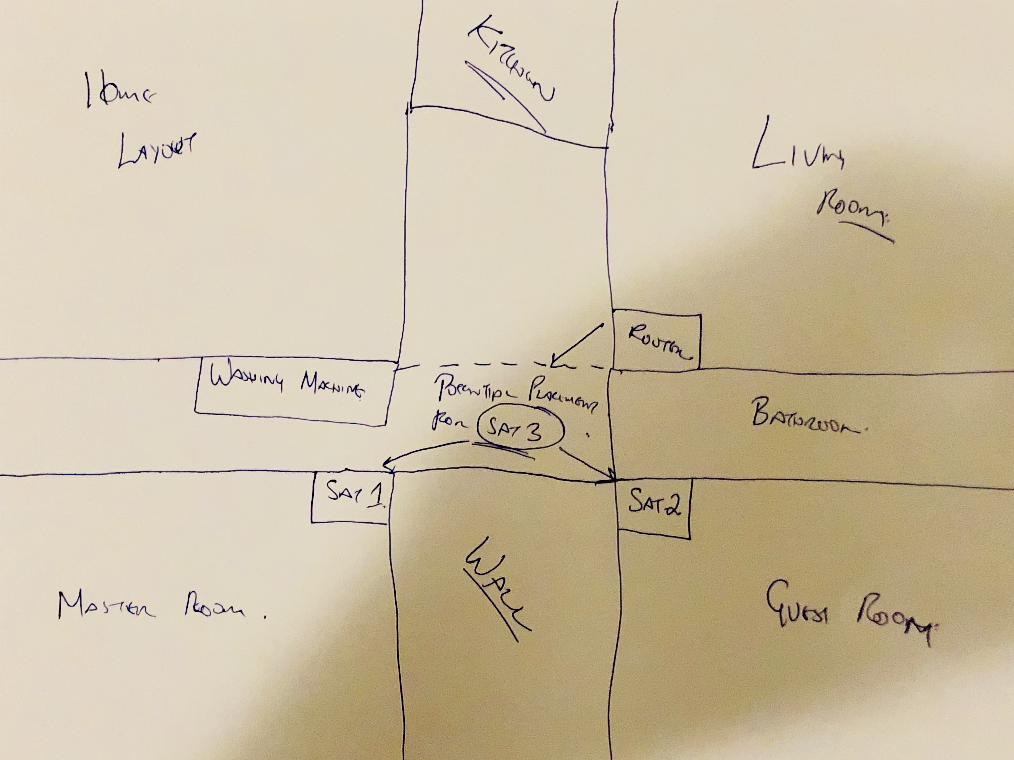1. I have daisy chain enabled though my setup is more like a star sort of setup ish. The router is not in the middle per se but its sort of - see attached apartment plan. You can see where the ROUTER And SATELLITE 1 and 2 are placed.
