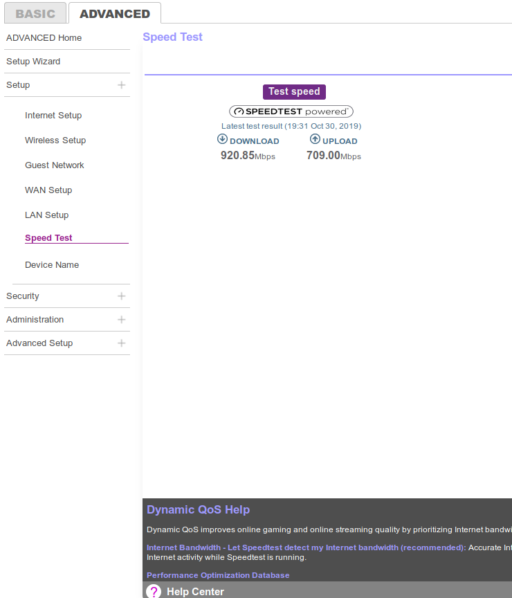 This morning I took advantage of the fact that all the devices were switched off or stand-by and repeated the speed tests at speedtest.net and fast.com (for Netflix). So there was no reason for Dynamic QoS to limit bandwidth.