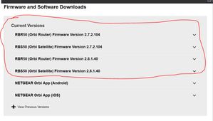 Why are there two firmware versions for the RBK50 and which one should be used? Edit: screenshot doesn't seem to be working but the versions are 2.7.1.104 and 2.6.1.40.
