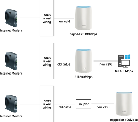 What happens if you go direct from Modem to back of RBR, not thru in wall wiring or any coupler?