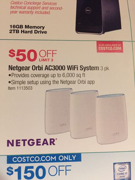 REMINDER: $50 off Orbi at Costco starts today, Jan 22, and runs thru Feb 4 - Router and 2 satellites