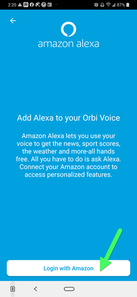 Hello, I am struggling to setup my Orbi Voice (RBS40V) with Alexa. I've accidentally logged in using the wrong Amazon account on the Orbi app on my Android phone. Each time I click on "Login With...