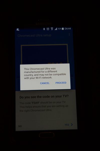 Unable to setup Chromecast Ultra over Wifi - claims it was made for a different country !!
