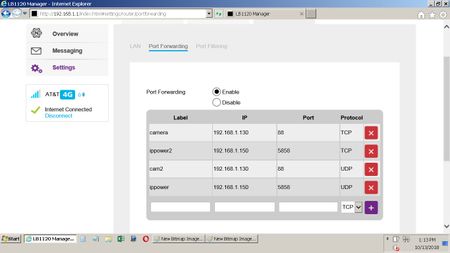 I am unable to open any forwarding ports in my LB1120 LTE modem. If anyone has done this successfully, please tell me ALL the settings. I am using an Acer laptop running Windows 7 and an 8-port switc...