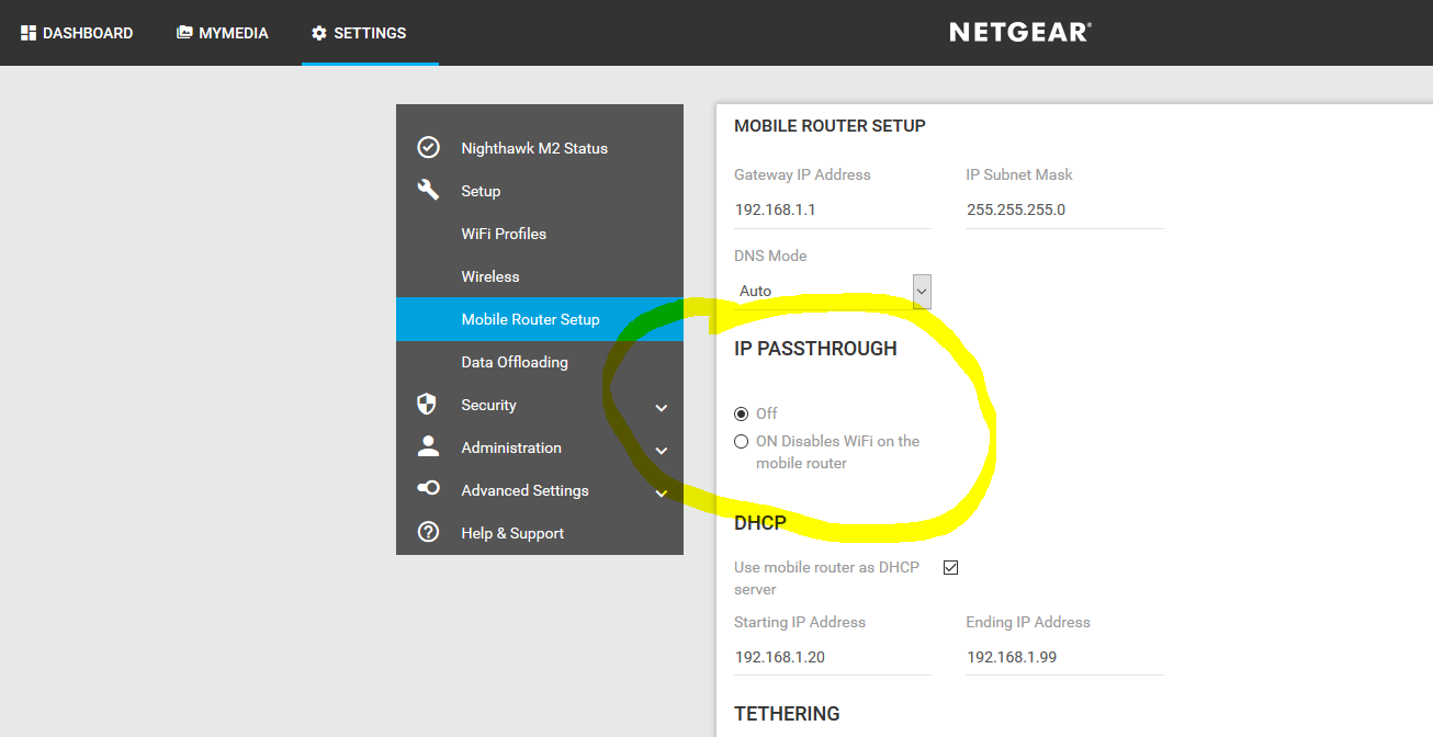 Hi All, Does your MR2100 have IP passthrough option? Settings> Setup> Mobile Router setup. If so, who is your SIM provider and what is the latest version of firmware? Settings> Administration> Firm...