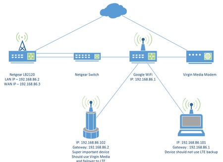 Hi all, Is it possible to have the LAN and WAN side of the LB2120 on the same network? I would only like certain devices to be able to use the LTE backup and to control this by having to set the de...