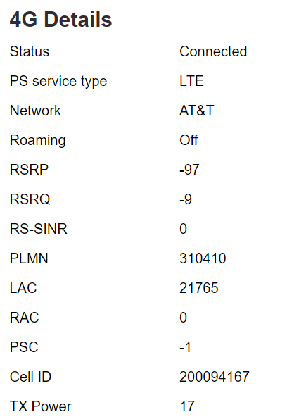 Was in the 30's prior to external antenna - now 18(dbm?) better - just not sure what it is...