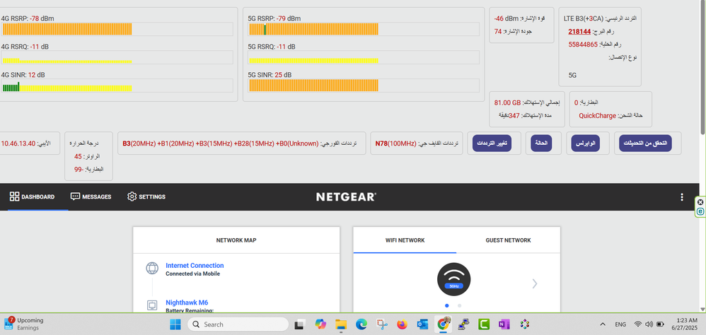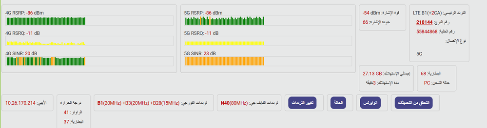 I have also tested other 5G modem brands and confirmed that the cellular tower near me is capable of supporting 5G on both bands simultaneously. (attached)