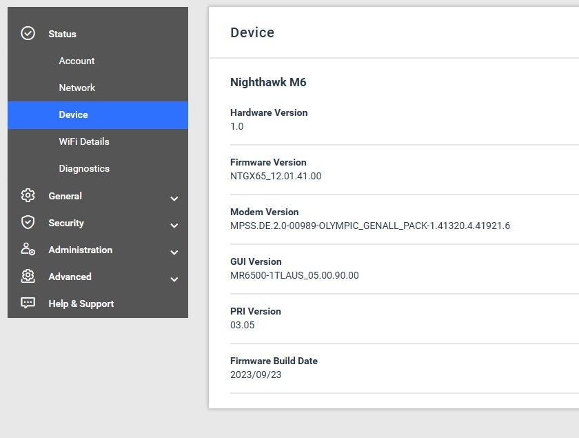 The Nighthawk M6 Pro automatically checks for new software or firmware updates periodically. If an update becomes available, the Nighthawk M6 Pro displays an alert. There is no option to manually update the firmware as it is locked by the Internet Provider.