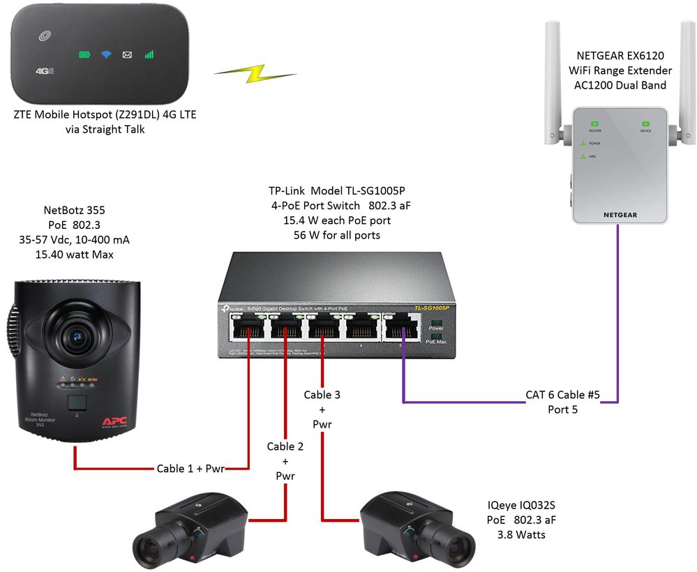 So, the idea is to use a WIFI extender (with an ethernet port, e.g. Netgear EX6150, EX6100, etc. ) with a multiport switch to provide connectivity to multiple wired ethernet appliances. It seems like it would work seemingly as wired in early post diagram. This is what I am questing help on.