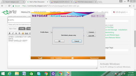 bantiFollowerMay 31, 2017Netgear AC327U 3G USB Modem on Windows WHEN I CONNECT MY AIRCARD MOBILE GENUINE . IT SHOW ONLY DIALED FAILE FOR THE LAST TWO DAYS WHAT SHOULD I DO?? Show More