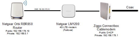 - Will the Orbi RBR850 still be able to do DHCP to the Ziggo Connectbox (is DHCP passing through the LM1200)?