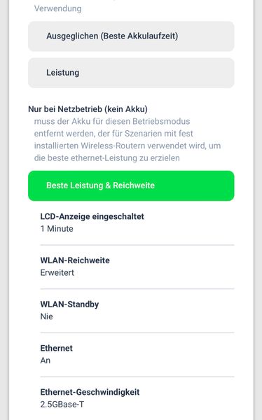 Now the problem: The M6 is set to „power mode“, so the WLAN should be online all the time and never go to sleep. But here it goes to sleep and of course does not go online again until I wake it up by pressing the WLAN button on the router. Since I am not in the garden all the time ( its several km away from my home) this is very annoying. I can not see any settings to solve the problem.