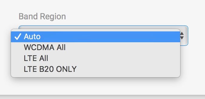 Once the device resumes, go to GUI/App -> Settings -> Advanced Settings -> Cellular -> in the Band Region drop down you will now have one additional option called "LTE B20 ONLY"