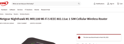 I'm trying to acquire a Nighthawk M1 hotspot (prefer to not use Amazon), and NetGear.com (USA) says "find a retailer", and every reputable retailer says they're out of stock, or it's been discontinued, with CDW giving a date of March 6, 2025.