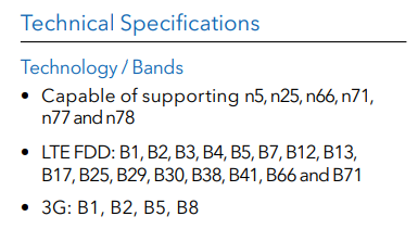 However, product data sheet shows that it is also capable of connecting to various bands listed above.