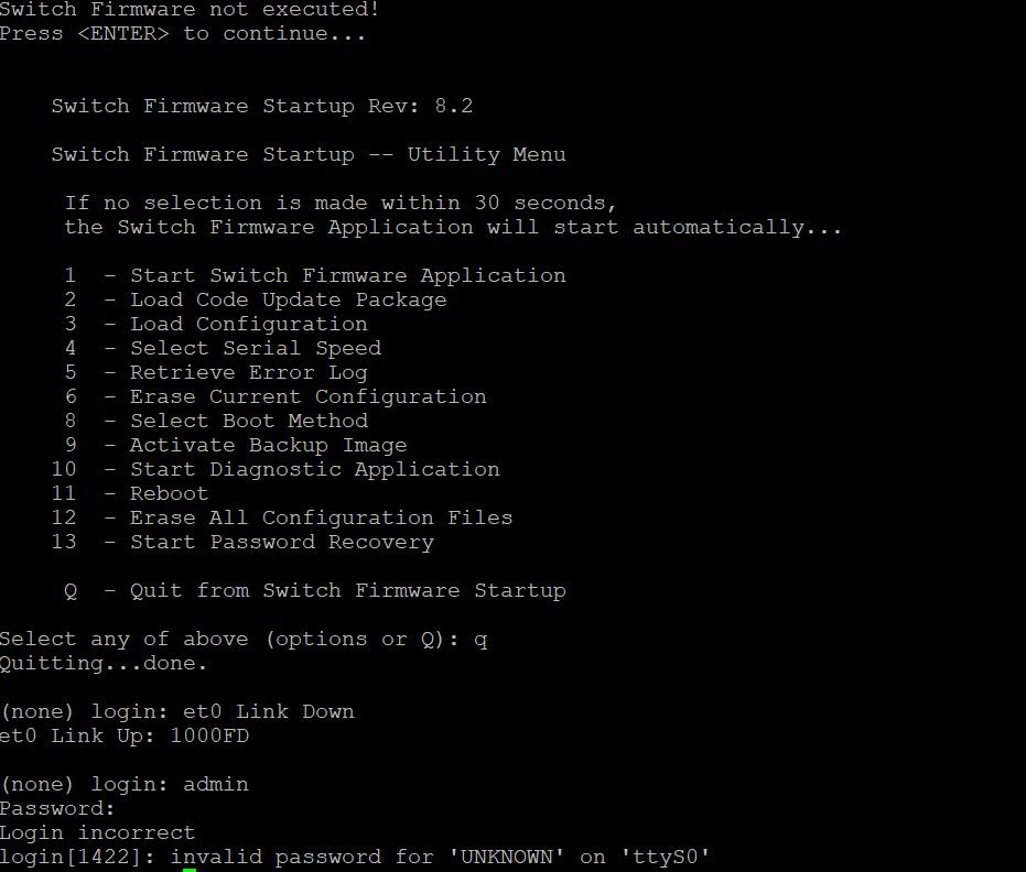 This is the formal way - permitting the serial console remains workable, and the switch isn't completely dead - you have to break the boot process to get access to the boot menu: