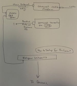 Not really a switch problem - much more a question to talk to Comcast Business services and on how to integrate this LTE Backup device in combination with a modem and a 3rd party router like your EERO.