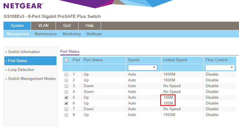 Could you please set both switch port and PC port to auto-negotiate mode, and try again? I think the port will up at high-support speed(in your case, it should be 1Gbps).