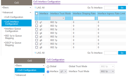 6. Select QoS > CoS > Advanced > CoS Interface Configuration.