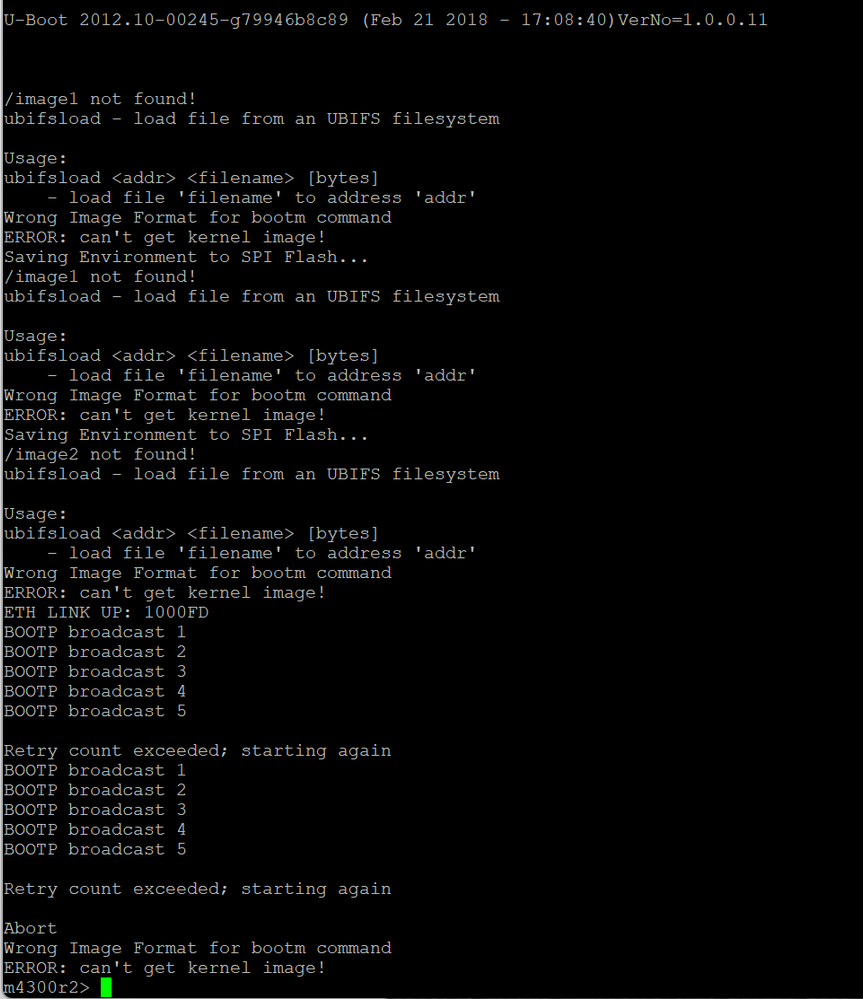 However if I reboot and don't have the TFPD server running it just goes to the in a loop until I interrupt M4300> prompt and it is unusable.