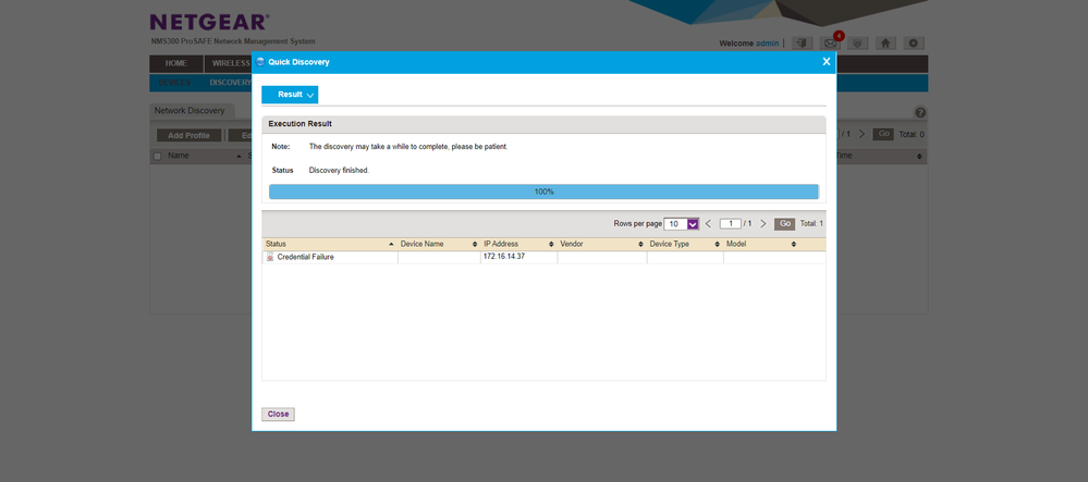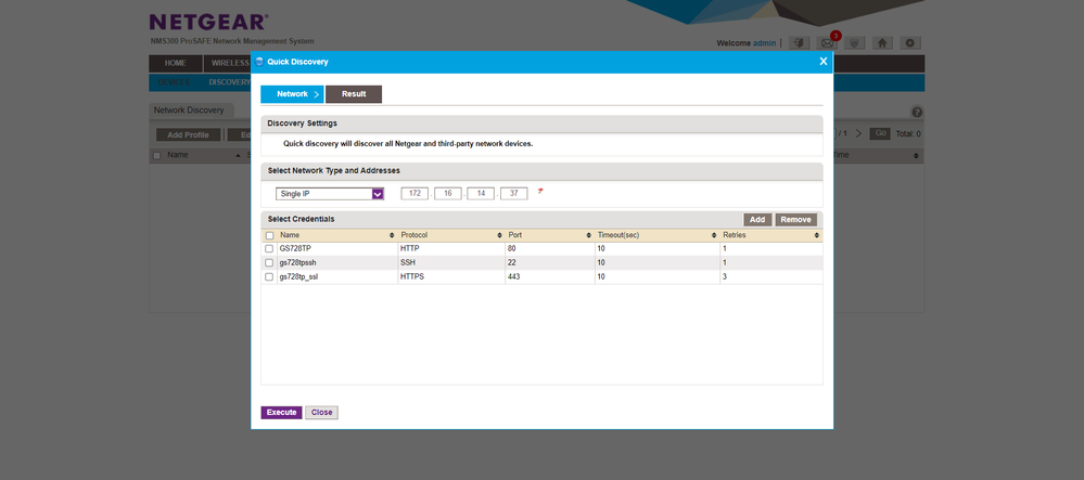 Only GS728TPv2 doesn't work. I can only discover it over SNMP. All others switches comunicate with credentials set at Default credentilas. GS728TPv2 has different web/cli password so I've added new credentilas and perform Quick Discovery and had Failure credentilas.