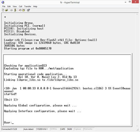 I found that I needed to set HyperTerminal for Flow Control "None" instead of the default of "Hardware".