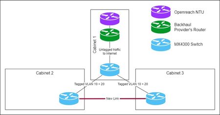 Apologies if this is a very basic question... We have three network cabinets. Each has a M4300-48XF (XSM4348FS) managed switch. Clients are connected to two different VLANS (VLAN 10 and 20) w...