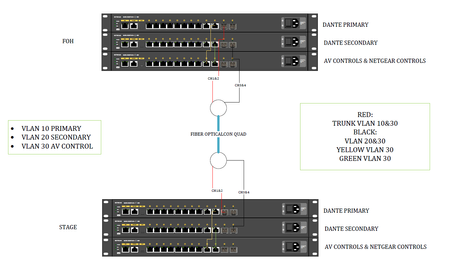 Hey all, We want to create redundant lines for our Audio and in de future video over IP. The idea is to run a Optical con quad fiber with 4 LC's from foh to stage to connect all audio and contr...