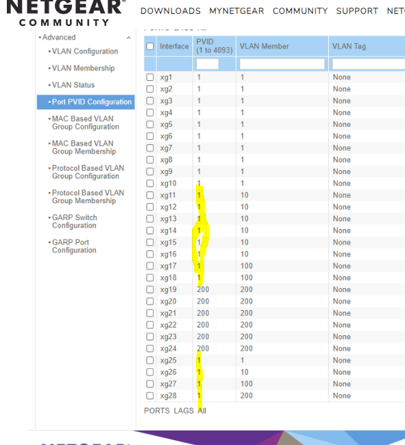 All these ports are [U]ntgged and - except of the VLAN 200 - are set to PVID 1, untagged frames flowing on these ports re ending on VLAN 1 instead of the one intended. no magic intended, so thank you for the complete config screenshots.