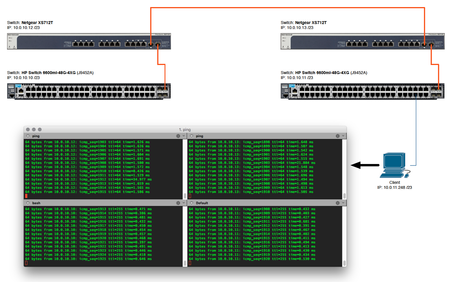 Hi all, we've a concept like the image shown below. Unfortunately I've bad ping response time to the Netgear switches from clients, connected to HP switches. Any idea whats happening? ...