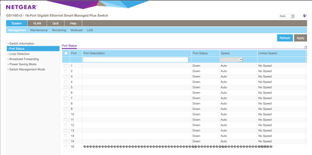 I just setup a new GS116Ev2, but when I look at the port screen, the information for port 16 is covered up with a series of question mark symbols (see pic). I haven't made any configuration changes ...