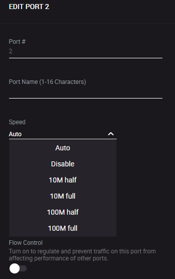 Fired up with V1.0.1.1 firmware out of the box. Connected to Gigabit port on switch. 100M connection. Went to web interface and edited a different port not in use. Pulled down the Speed and ...