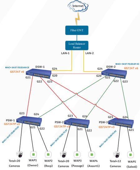 Hello, In a network scenario, we have total 5 Netgear switches. We have 2 GS724Tv6 switches and 3 GS724TPv3 switches. Check the topology below: When we implemented this design, I found that on...