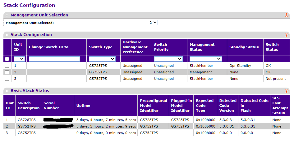 After doing a maintenance, which included opening my switches and blowing compressed air on the components, 2 of my switches don't show anymore in the stack. I know that they are both working, but the web interface only shows my main switch and the other 2 are showing as "not present". the Netgear switch discovery tool doesn't see them and i can't access them through their reserved IP.