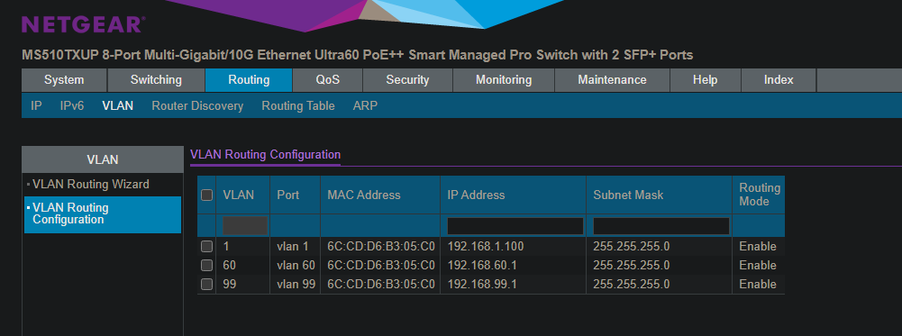 Good day, I am using a Netgear MS510TXUP multi gigabit switch. (not the MX510TXPP as selected in model, but can't select the MS510TXUP) I am trying to use the VLAN routing functions, but with...