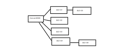 2) Core can connect all the buildings in star connections but cannot connect the extended building.The diagram above can clarify my issue:BLD-126 can ping BLD-124 but cannot acces the core.