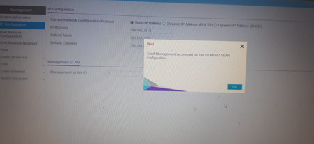 I can't make change management VLAN form VLAN 1 to VLAN 10, when ever tried to change MGNT VALN am getting error. SWITCH MODEL : GS724TPV2 prosafe ERROR! MANAGEMENT ACCESS WILL BE LOST ON MGNT ...