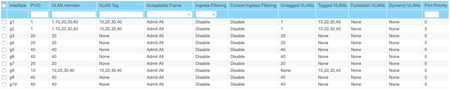 Hard to say what an how the other network devices and the router(s) are configured. By rule of thumb; I see g1 has four VLAN members, all tagged.