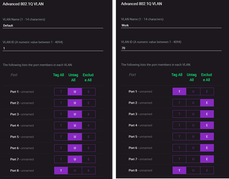 Said that: Also the GS308EP does have a PVID config table, just like the GS105Ev2. Last hint before I shut up: Use the same designations for what is supposed the same network and WLAN. Why does this have to be "LAN" on the security appliance (I understand it's part of the default configuration) but over on the GS308E you name it "Work". To easy to make yourself a lot of confusion, especially while trying to learn such a powerful (tough simple) technology.
