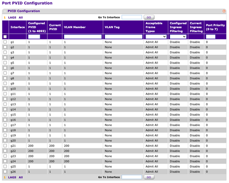 Port 1 - 20: VLAN 1 / PVID 1 / Untagged