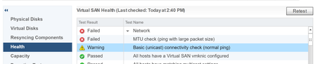 I am running vmware 6.0 U2 vSAN dedicated traffic on a XS712T network switch and I am getting MTU Large Packet Size Fails on all ports.