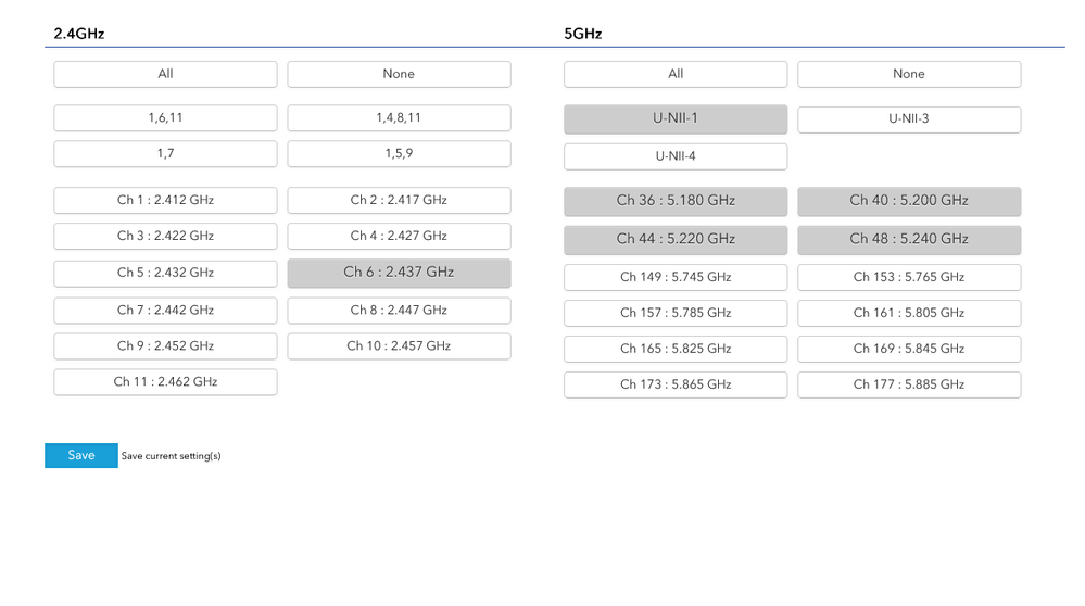 The promotional materials for the WAX210 indicate the hardware supports using DFS channels. The manual even gives a stern warning that I am responsible for proper use of these channels. This acc...