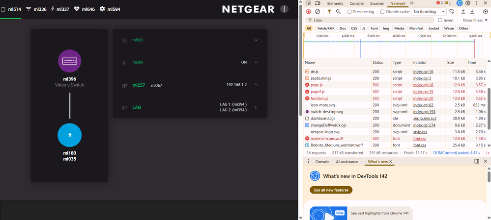 Starting the F12 developer mode in Google Chrome, it says that some .js functions and .svg vectors get 502 - Bad Gateway.